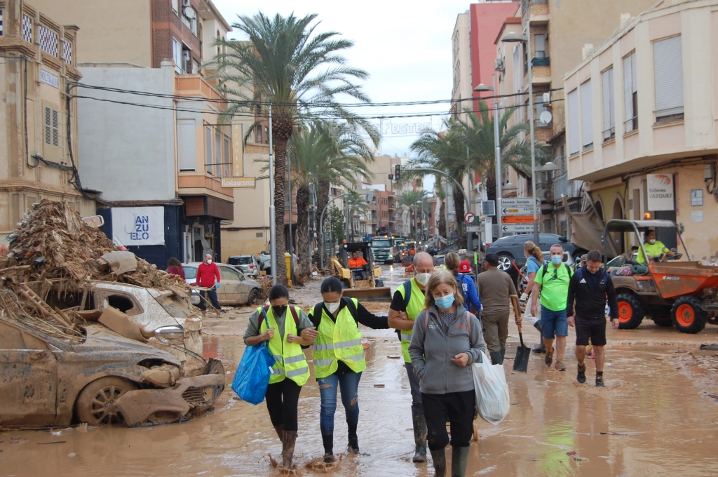 A más de una semana de la catástrofe todavía existen paralelismos entre caminar por la decena de pueblos del sur de la capital valenciana y hacerlo por los países del mal o bien llamado tercer mundo. La civilización derrotada: el triunfo de la barbarie en forma de barro, de saqueos nocturnos y de ineficacia gubernamental. Pero, a la vez, el triunfo del espíritu representado por los miles de voluntarios que desde hace días ayudan en todo lo que pueden. En Catarroja, como en tantas localidades, puede verse nada más salir el sol una larga fila de jóvenes de la llamada generación de cristal con botas hasta las rodillas, guantes, mascarillas y palas.