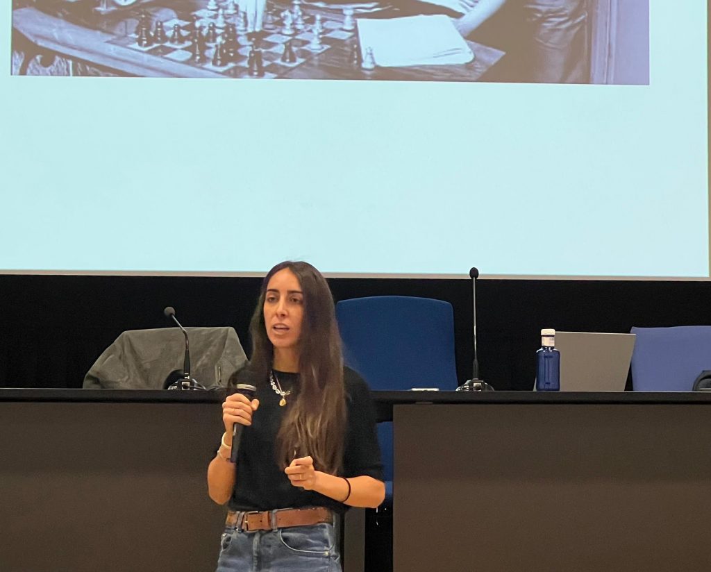 Una de sus fundadoras, Daniela McArena, cuenta en una charla en la facultad de qué forma crearon la cuenta durante la pandemia