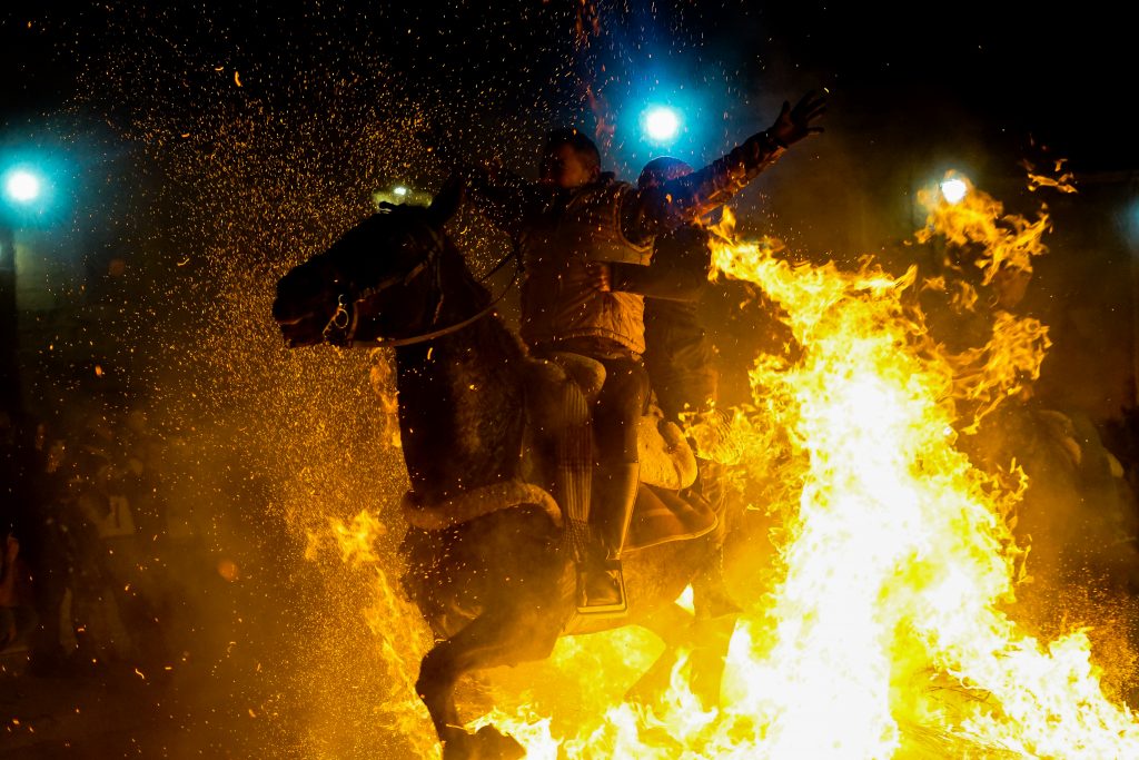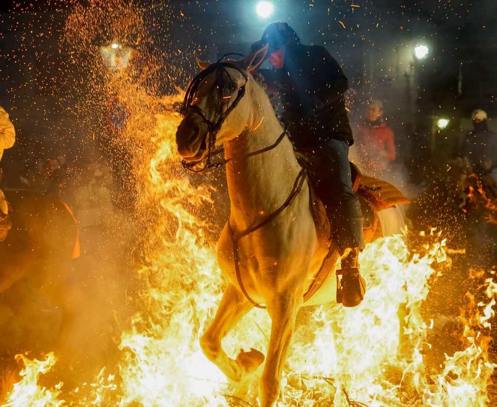 Cada 17 de enero, día de San Antón, el patrón de los animales, se celebran diversas tradiciones que sitúan a las reses y mascotas como protagonistas. La pequeña localidad abulense de San Bartolomé de Pinares celebró la noche del 16 de enero su fiesta de las Luminarias. Más de cien caballos atravesaron las llamas de una veintena de hogueras a modo de purificación religiosa, como llevan haciendo los bartolos desde el siglo XVIII para proteger al ganado de las epidemias y enfermedades.