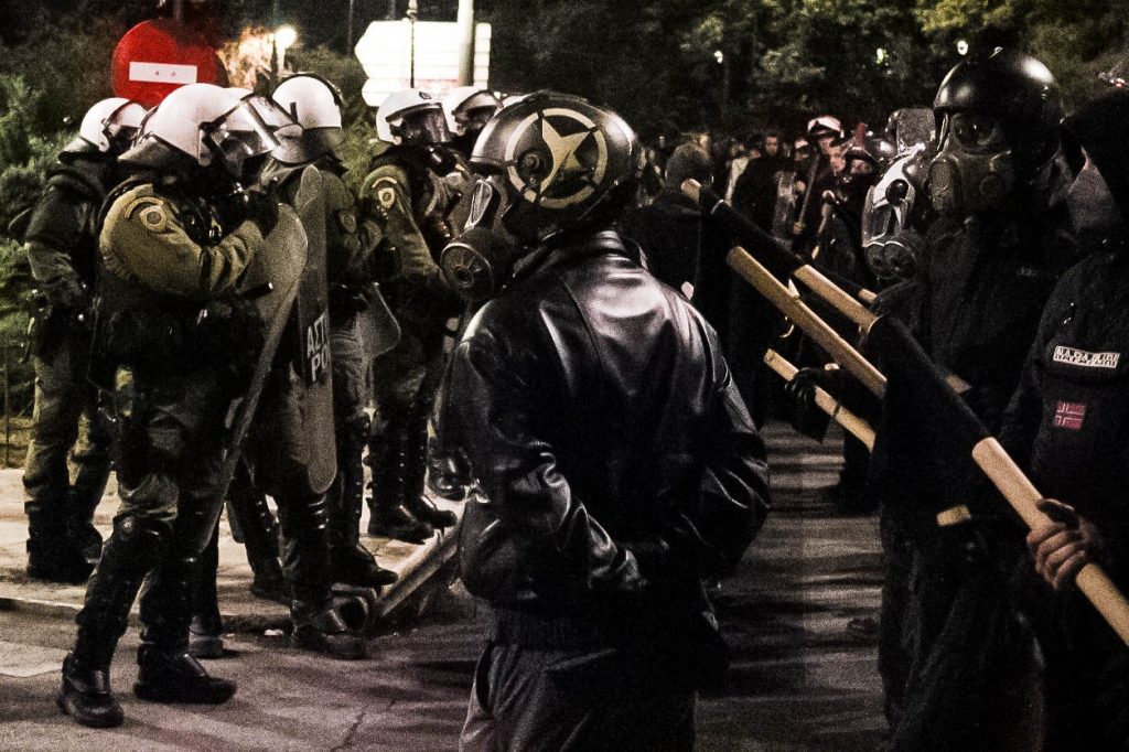 Miles de griegos salieron a la calle para conmemorar el aniversario de la “masacre de la Politécnica” como cada 17 de noviembre. Asistieron desde organizaciones comunistas, anarquistas y anti-racistas, como el KKE, Rouvikonas y KEERFA hasta el movimiento estudiantil o miembros de la sociedad civil. Los manifestantes más radicales, en su mayoría anarquistas, portaban un casco de moto y una bandera con un asta considerablemente grueso para “protegerse de los ataques de la policía”, a la cual califican de “violenta, opresora y asesina”. Pese a un clima generalizado de tensión, especialmente en la parte trasera de la manifestación donde se encontraban los anarquistas, esta se desarrolló pacíficamente y no se produjo ningún altercado.