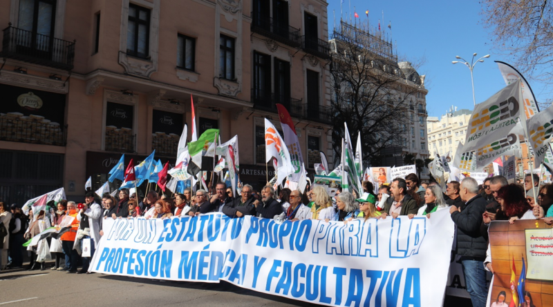 Miles de médicos exigen un estatuto propio para su profesión con una multitudinaria pitada frente al Ministerio de Sanidad