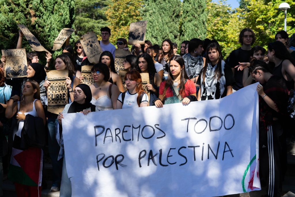 Distintas asociaciones estudiantiles de los campus de Ciudad Universitaria y Somosaguas se han unido en una movilización para manifestar su repudio ante lo que califican como un “genocidio” en la Franja de Gaza. La concentración ha tenido lugar esta mañana en el patio del Edificio de Estudiantes, donde los asistentes han exigido a las autoridades universitarias que adopten una postura firme y que condenen públicamente las acciones del Estado de Israel.