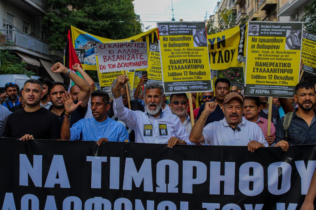El descontento se materializó de nuevo el pasado sábado, 12 de octubre, cuando cientos de personas salieron a las calles de la capital helena al grito de “abajo con el gobierno de asesinos”. En solidaridad con su compañero de profesión, decenas de repartidores escoltaron la marcha en moto. La manifestación, convocada por Movement United Against Racism and the Fascist Threat(KEERFA), transcurrió sin ningún altercado desde la plaza Victoria hasta la comisaría de Agios Panteleimonas, donde se halló el cuerpo, aparentemente torturado y sin vida, de Mohammed Kamra.