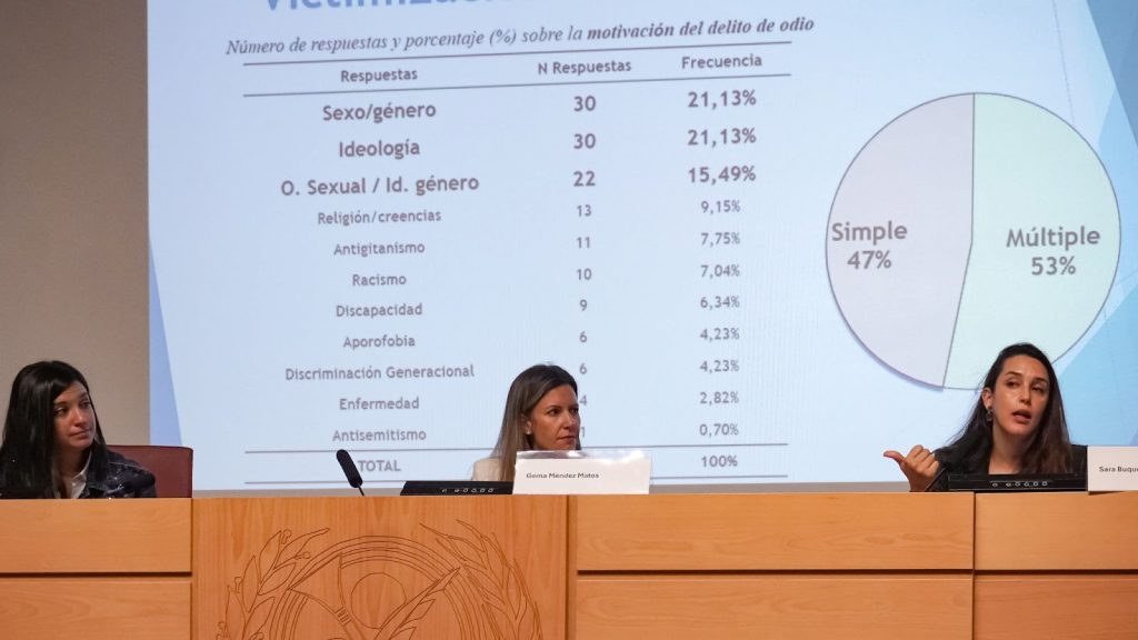 Las encuestas de la ONDOD constatan que la frecuencia de delitos de odio por motivos de sexo o género y por ideología es la misma. Además, Buquerín se sorprende por el hecho de que el porcentaje de víctimas entre 18 y 25 años es menor que en otros rangos de edad, en tanto se supone que los jóvenes utilizan más las redes sociales.