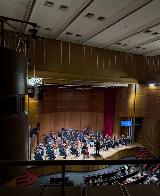 En la segunda parte, el ambiente cambió por completo. Entró el cellista Álvaro Lozano, estudiante de la Escuela Superior Reina Sofía y ganador del Intercentros Melómano 2024. Su presencia aportó una calma casi física. Las Variaciones Rococó de Tchaikovsky fueron un regreso a la melodía, a lo reconocible. Cuando sonó el tema principal, me encontré pasmada. Sacudí la cabeza para no perder mi entrada en el compás 36 y vi que mis compañeros compartían esa misma expresión de admiración sincera.