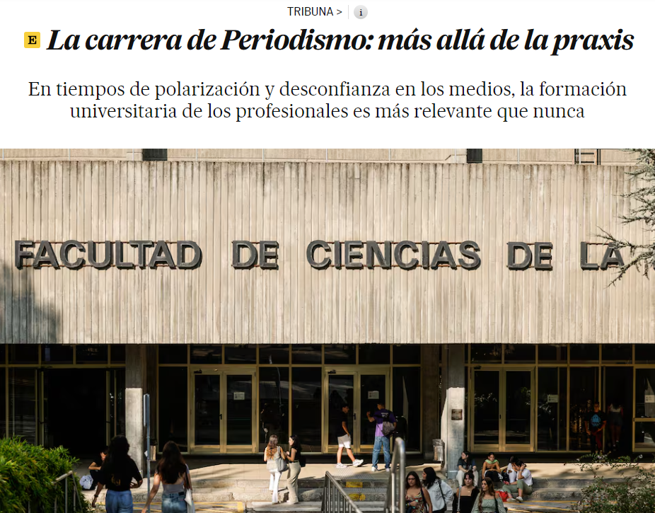 En la tribuna de El País “La carrera de periodismo: más allá de la praxis”, el decano de la Facultad de Ciencias de la Información, Jorge Clemente, reflexiona sobre la importancia de la formación académica en periodismo, destacando la necesidad de dar un enfoque integral que incluya tanto habilidades prácticas como una sólida base teórica y ética. Clemente enfatiza la importancia de adaptarse a las transformaciones digitales y a los nuevos desafíos del entorno mediático actual.