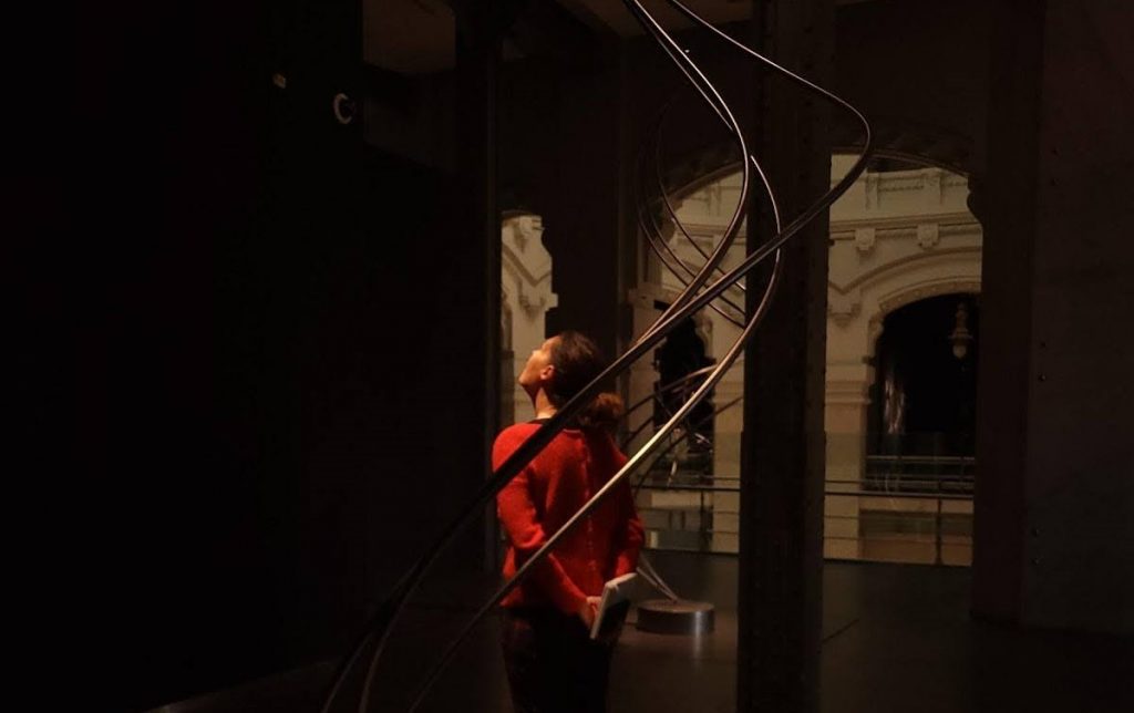 Los dos extremos de la sala que alberga la exposición se relacionan con la «repetición entre el micro y macroespacio». Mientras la parte izquierda, llamada Energía, trata lo molecular, lo particular; la derecha, Gravitación, trata lo universal, lo astrofísico. Si se va desde el extremo izquierdo hacia el centro, las esculturas aumentan su presencia.