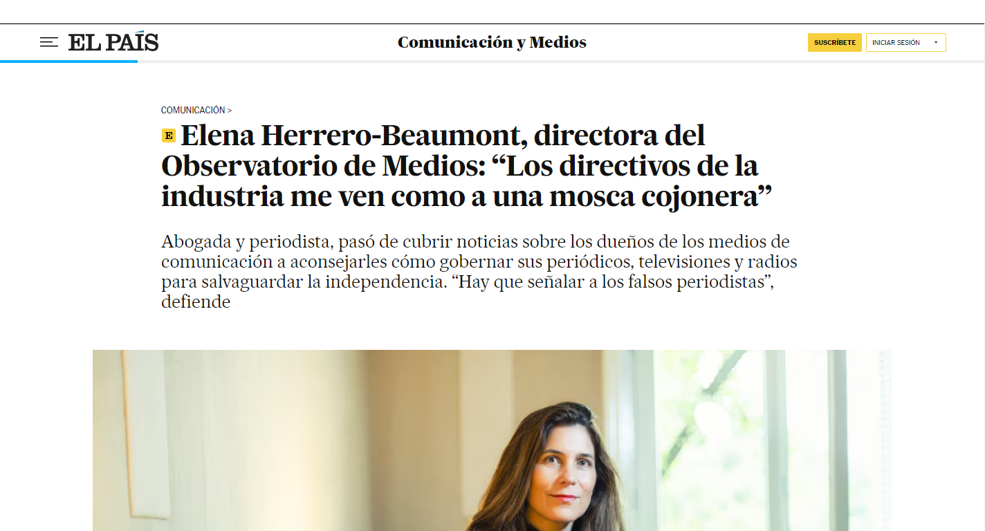 ‘El País’ entrevista a Elena Herrero-Beaumont, directora del Observatorio de Medios