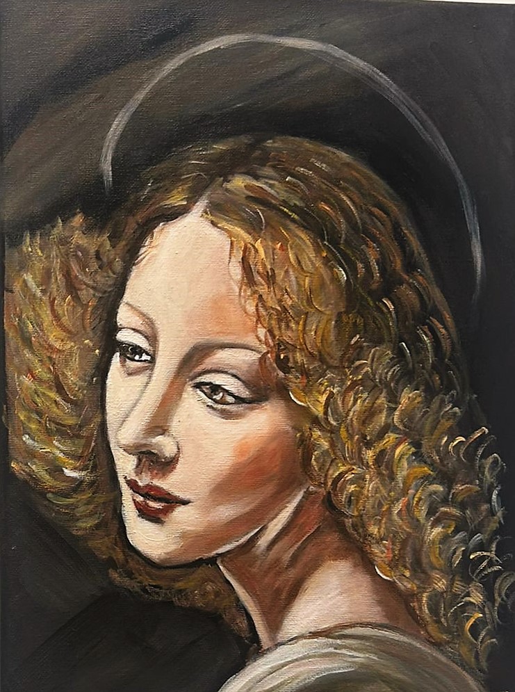 Mercedes Íñiguez, que forma parte del personal de administración y servicios (PAS) de la facultad, se presenta en esta muestra como una artista autodidacta, como alguien que, tras un recorrido lleno de pausas y reencuentros con la pintura, decide compartir su visión sobre la mirada a través del acrílico. Originaria de Jerez de La Frontera, Íñiguez cuenta que sus influencias vienen del imaginario religioso de la Semana Santa del sur, al que su familia ha dedicado dos generaciones. La primavera de Jerez está marcada por los ojos tristes de las imágenes religiosas que salen en procesión y el olor a azahar mezclado con incienso de sus callejones. Es en este contexto en el que la artista recuerda el taller de su abuelo y su tío, ambos escultores de la ciudad del flamenco y el vino: “Ese taller, que conocí cuando era muy niña, era un lugar mágico que olía mucho a madera. Recuerdo estar ante las imágenes de vírgenes, cristos y ángeles y me parecía estar en el cielo”, comentaba Íñiguez en la presentación de la exposición.
