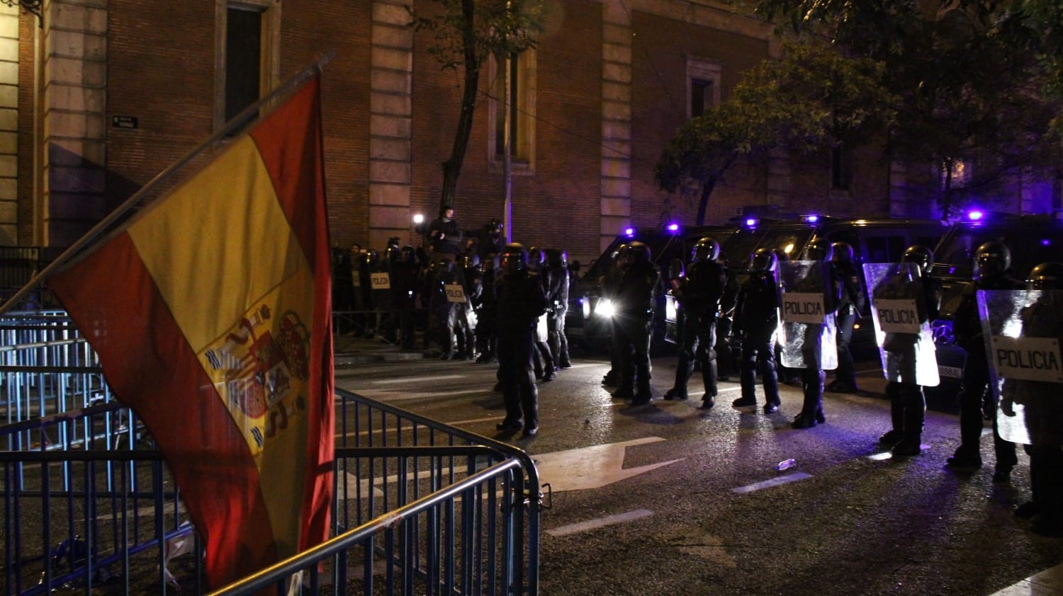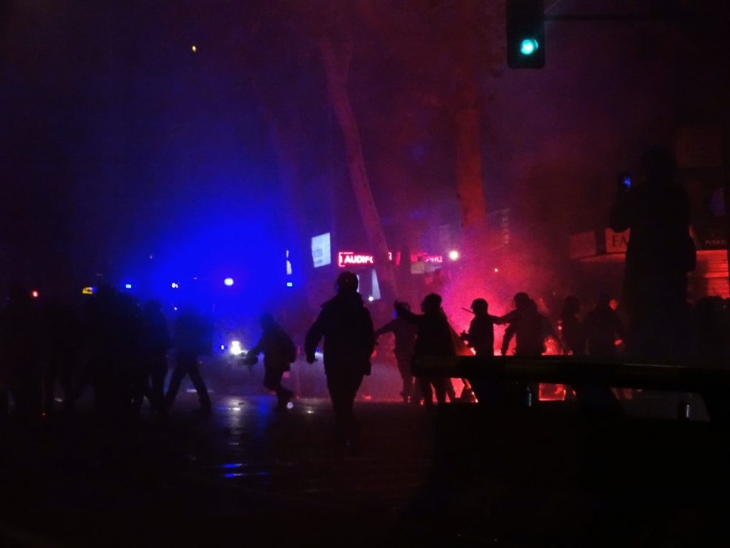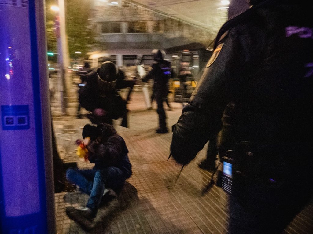 9 de noviembre. Violencia y lanzamiento de objetos alrededor de Ferraz. Foto: Pedro Pascual.