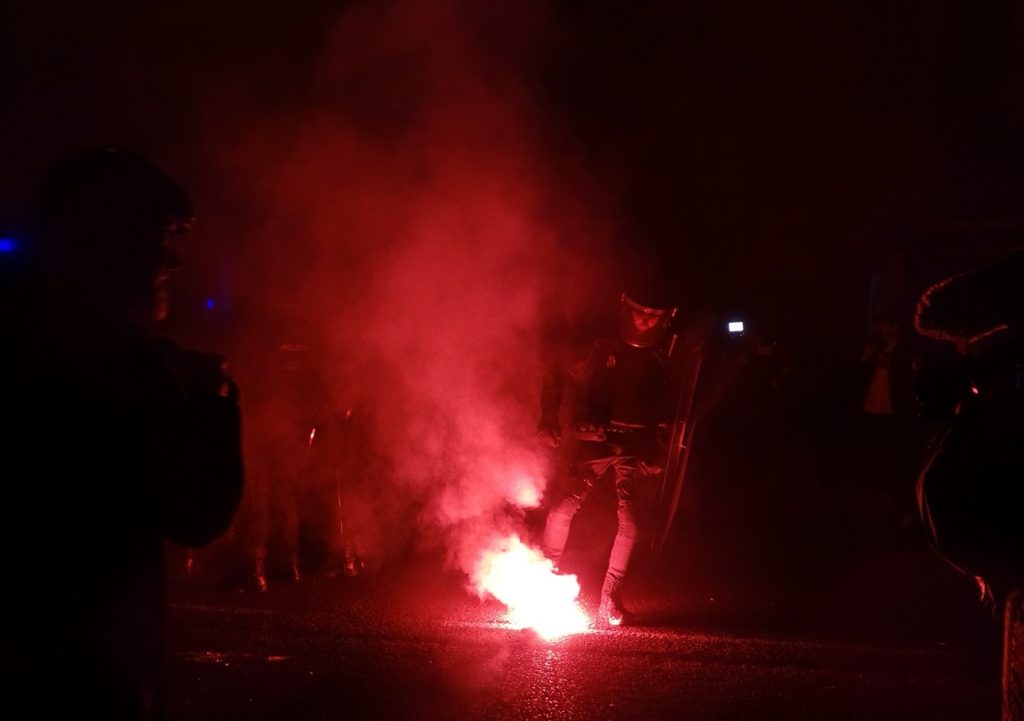 7 de noviembre. La tensión comienza a desatarse con humo de gas lacrimógeno. Foto: Pablo Seco.