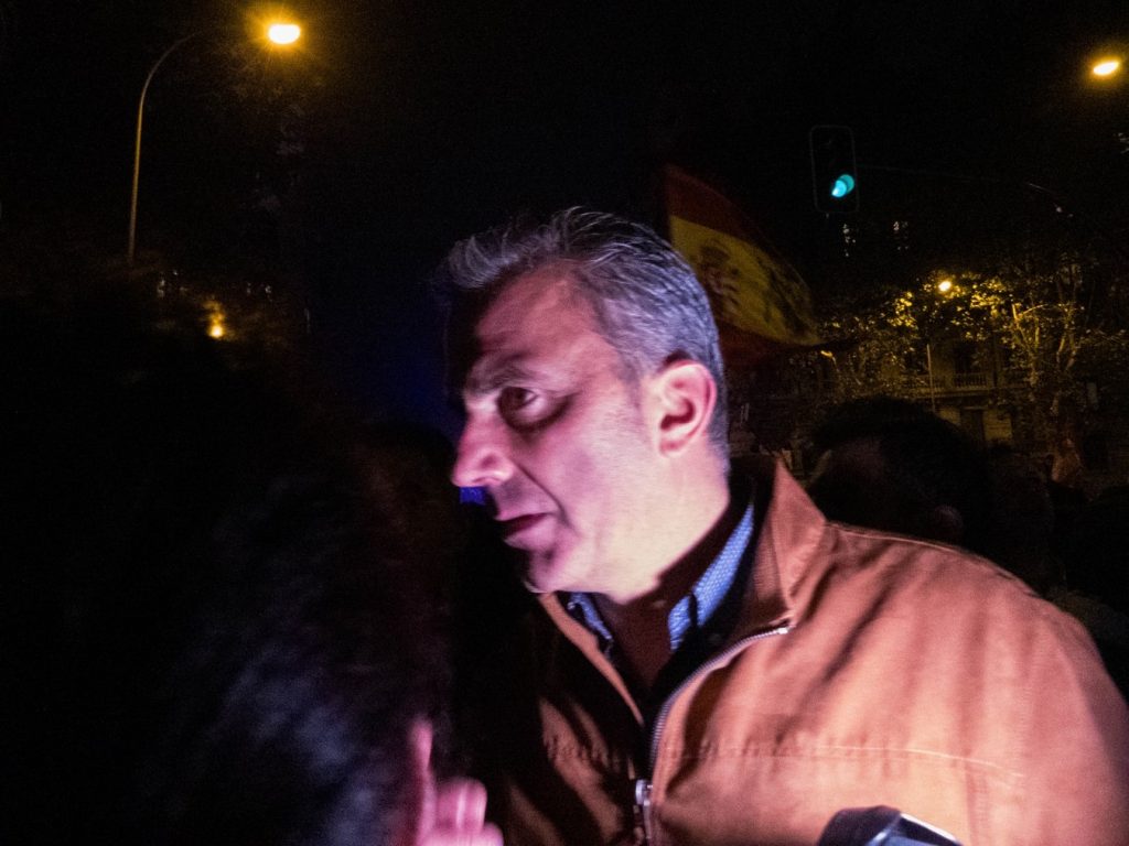 16 de noviembre. Javier Ortega Smith, diputado y portavoz de VOX, acude a la decimotercera noche de manifestaciones. Foto: Mario Morón.