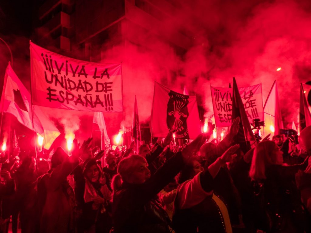 18 de noviembre. Manifestación falangista contra la Ley de Amnistía y la Ley de Memoria Histórica, que terminó en la calle Marqués de Urquijo. Foto: Pedro