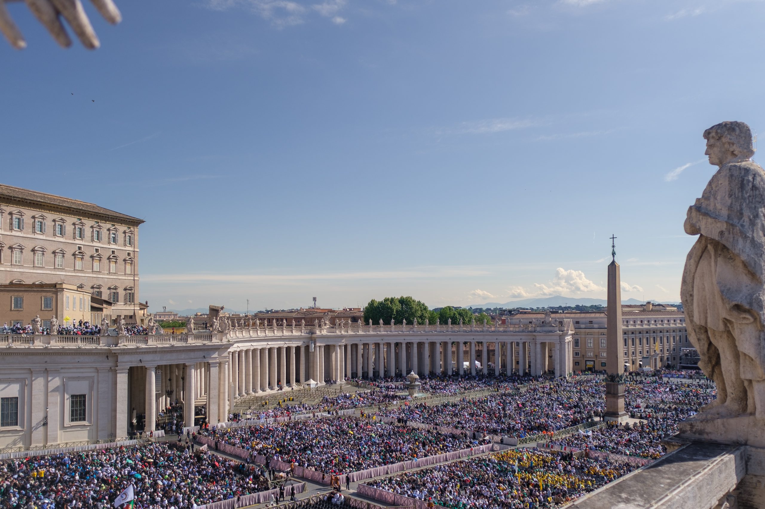 Tras la homilía llegó la comunión. Decenas de sacerdotes se dirigieron en procesión hacia distintos puntos de la plaza para garantizar una hostia sagrada a todos los presentes. A mi lado comulgaron un joven ciego y su amigo Marco, ambos romanos. Se fundieron en un abrazo para darse la paz.
