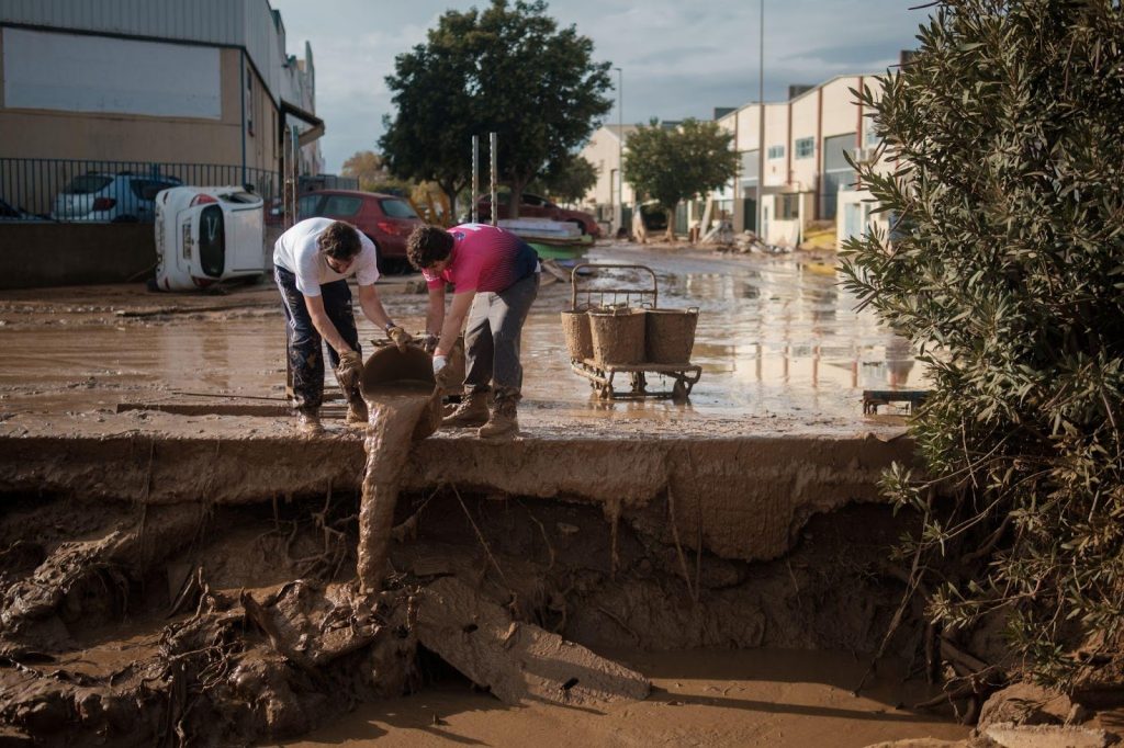 Volvimos de Alfafar a pie, bajo la lluvia, cuando acababan de lanzar de nuevo la alerta roja, esperando 180 litros por metro cuadrado. «El martes cayeron 500», dijo un policía. Las calles se estremecieron cuando corrió el rumor de que el barranco de Catarroja se estaba desbordando de nuevo. «El agua viene de allí», escuchamos. Era la dirección en la que teníamos el coche. Un agente nos tranquilizó, asegurándonos que era solo un bulo. «¿Quién sería capaz de hacer correr un rumor así en una situación como esta, y qué ganaría con ello?», pensé.