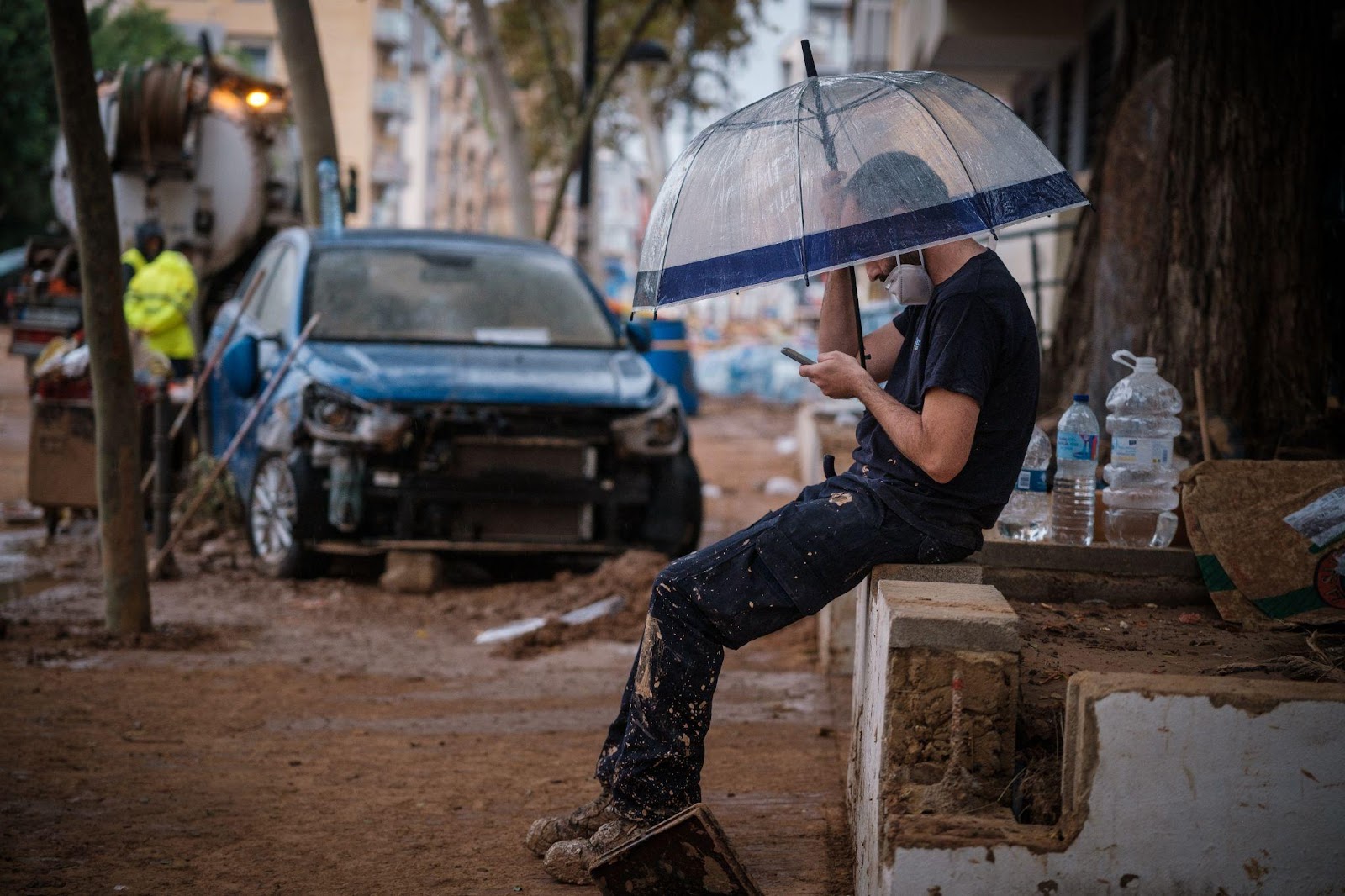 Ya en el puente que atraviesa el nuevo cauce del río Turia, entrando en Valencia y empapados, Alejandro miró al cielo y me dijo: «No sé tú, pero esto es lo que más disfruto: el barro». Le di la espalda. Tenía razón, es por el barro por lo que me hice fotoperiodista.