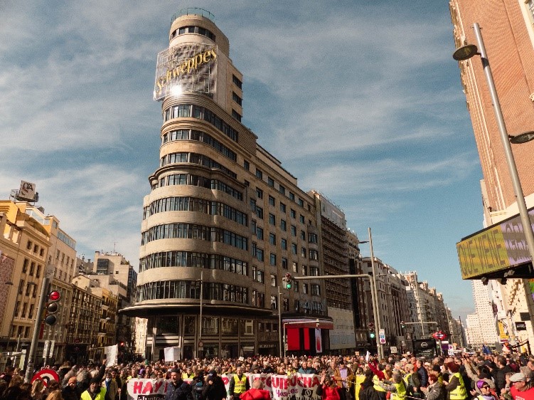 La concentración, con centro en la plaza de Cibeles, frente al ayuntamiento madrileño, tuvo cuatro puntos de partida, cuatro columnas que partieron desde los diferentes ejes cardinales de la ciudad: Plaza de España, al oeste; Nuevos Ministerios, al norte; el Hospital de la Princesa, al este y Legazpi, al sur. En total, 169 pueblos y 120 barrios estuvieron presentes, incluidos los vecinos del barrio de San Fernando de Henares afectado por las obras de la línea 7 de Metro.
