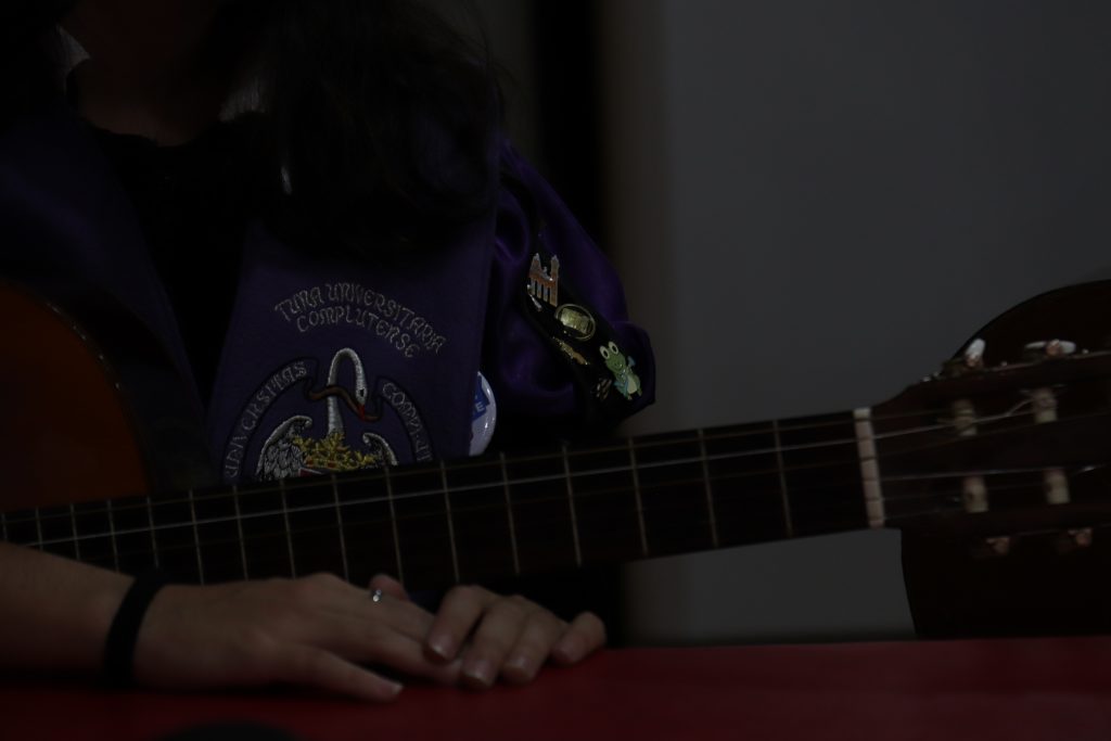 “Si tienes un instrumento en casa, genial, pero si no aquí te proporcionamos los materiales necesarios” dice Andrea a las nuevas incorporaciones, una de las protagonistas de esta tuna, que junto a su instrumento, ha vivido historias inigualables que guardará para siempre en su memoria. Desde sus inicios, no fue fácil poder acceder a un puesto en un mundo que, aparentemente, es sólo de hombres. Con mucho esfuerzo, estas mujeres han llegado a estar en posiciones muy altas en certámenes y ganarse el cariño y apoyo por parte de su ciudad. “No es fácil ir por la calle y que todo el mundo te mire, pero te acabas sintiendo como una estrella del rock” asegura Laura, una de las más veteranas en la tuna. No solo son sus voces las que cautivan al espectador, sus capas tienen detrás una historia que hace que no haya una igual en el mundo. Cada una bordada desde los escudos de los países que visitan hasta símbolos que representan un momento importante en su carrera. Hay uno que todas comparten: el escudo de la complutense, un escudo modificado.