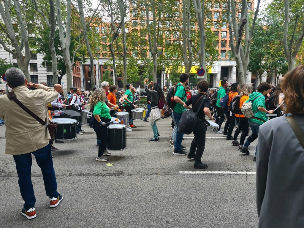 Batucada Stop Desahucios a su paso por el Paseo del Prado | Foto: Emilio Estrella