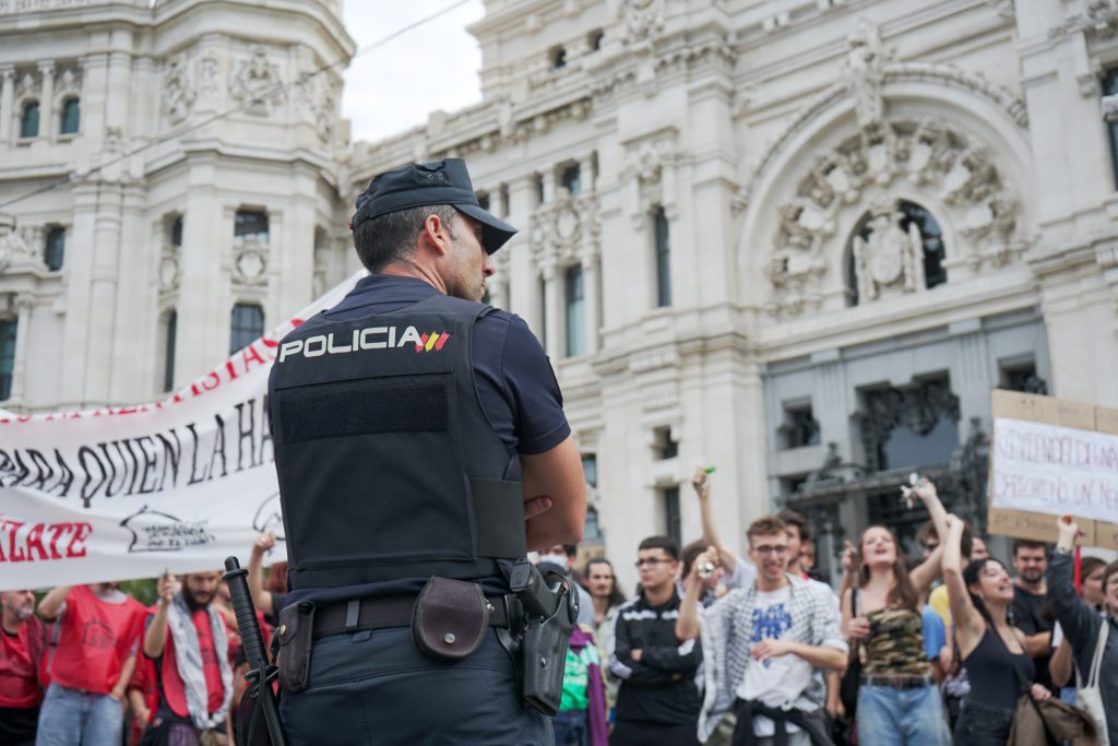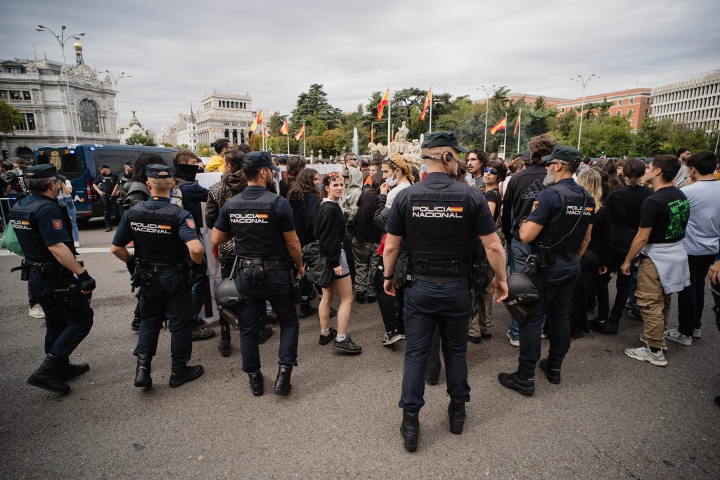 Una vez allí, la manifestación se dividió en dos. Los primeros continuaron su recorrido hasta la plaza del Callao mientras que las organizaciones sindicales, además de la coordinación de las Juventudes Socialistas, decidieron permanecer en Cibeles para denunciar a los partidos políticos presentes, que se encontraban al final de la marcha.