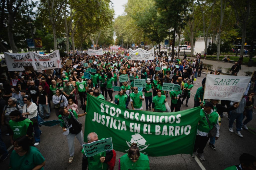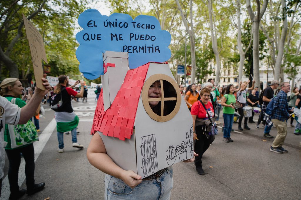 Las calles de Madrid se llenaron este 13 de octubre para exigir el derecho a la vivienda y protestar con el objetivo de presionar a los gobiernos a bajar el precio del alquiler un 50%. El Sindicato de Inquilinas, organizador de la manifestación, afirma que asistieron 600.000 personas, mientras que la Delegación del Gobierno estima alrededor de 22.000.