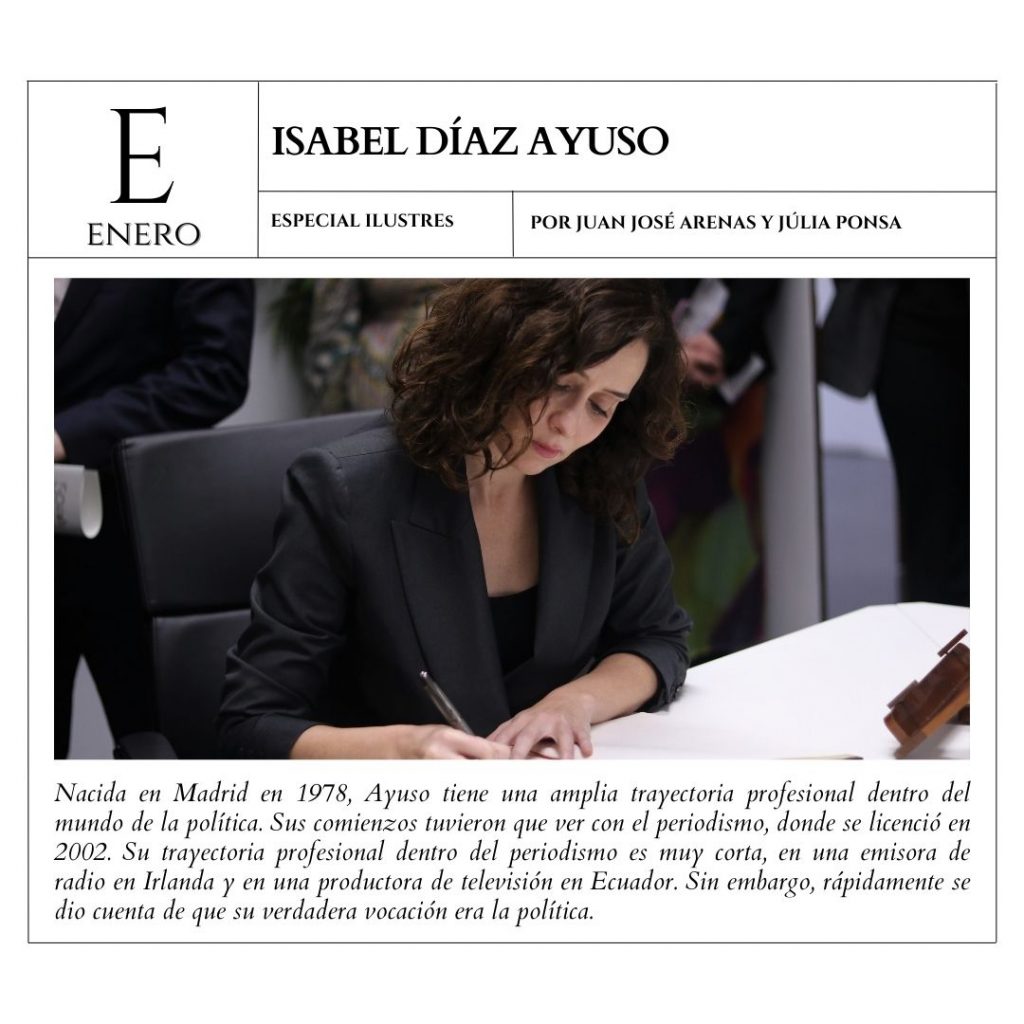 Nacida en Madrid en 1978, Ayuso tiene una amplia trayectoria profesional dentro del mundo de la política. La actual presidenta de la Comunidad de Madrid se licenció en Periodismo en 2002, pero apenas ejerció: trabajó en una emisora de radio en Irlanda y en una productora de televisión en Ecuador. Según asegura, pronto se dio cuenta de que su verdadera vocación era la política (cursó un máster en comunicación política en la facultad). Tras afiliarse al PP, trabajó para Esperanza Aguirre en los años en los que esta era presidenta de la Comunidad de Madrid, para Cristina Cifuentes en 2015 y fue portavoz en la Asamblea de Madrid durante el verano de 2019. En los siguientes comicios, resultó elegida presidenta de la CAM con el apoyo de Ciudadanos y en las últimas elecciones no solo fue reelegida, sino que consiguió mayoría absoluta. Este martes, a propuesta del Rectorado, la UCM la premió con el distintivo de Alumni Ilustre. En su intervención, Ayuso recordó sus años en la facultad y afirmo: “Uno siempre debe volver a los sitios donde fue feliz. Me siento orgullosa de haber salido de la universidad pública”.