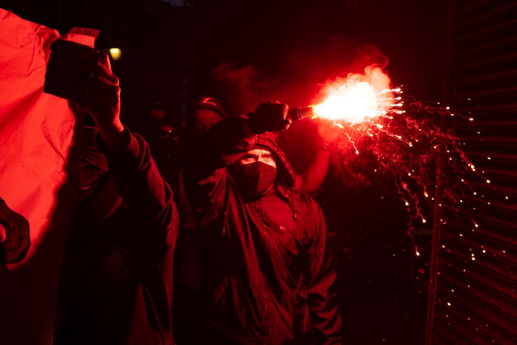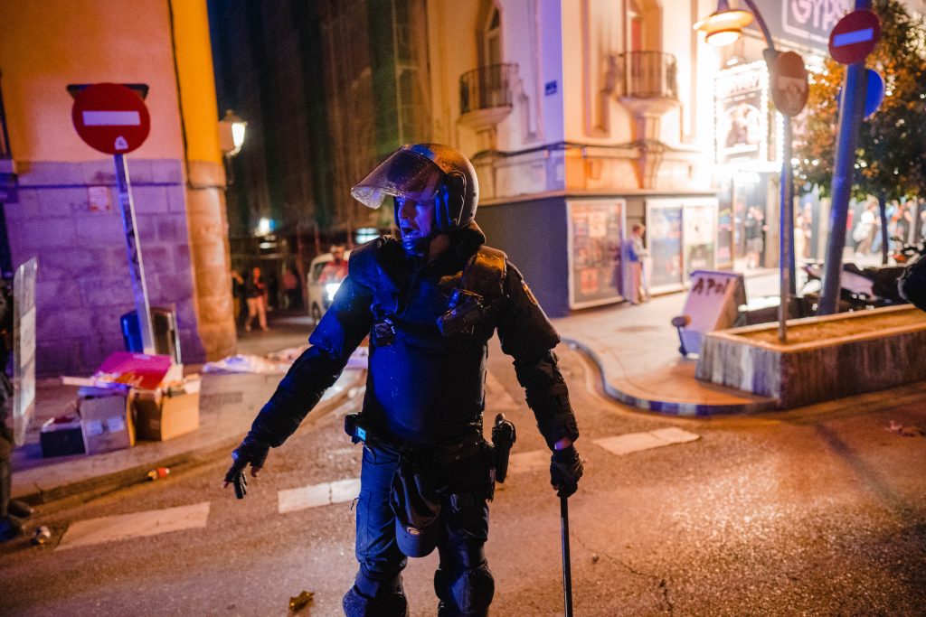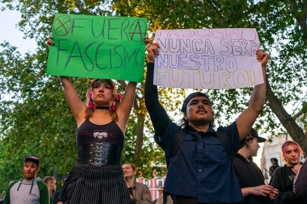 Poco después de las diez de la noche, se vivió el momento más tenso de la jornada cuando un grupo de manifestantes antifascistas intentó romper un cordón policial. La respuesta de los antidisturbios fue inmediata: varios disparos al aire, uso de porras y gas pimienta para dispersar la protesta. La plaza se vació en minutos.