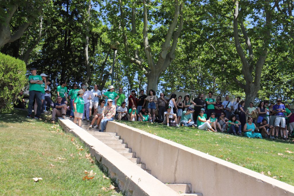 Durante la concentración, decenas de profesores, investigadores y estudiantes han vestido camisetas verdes, color emblemático de la defensa de la educación pública.