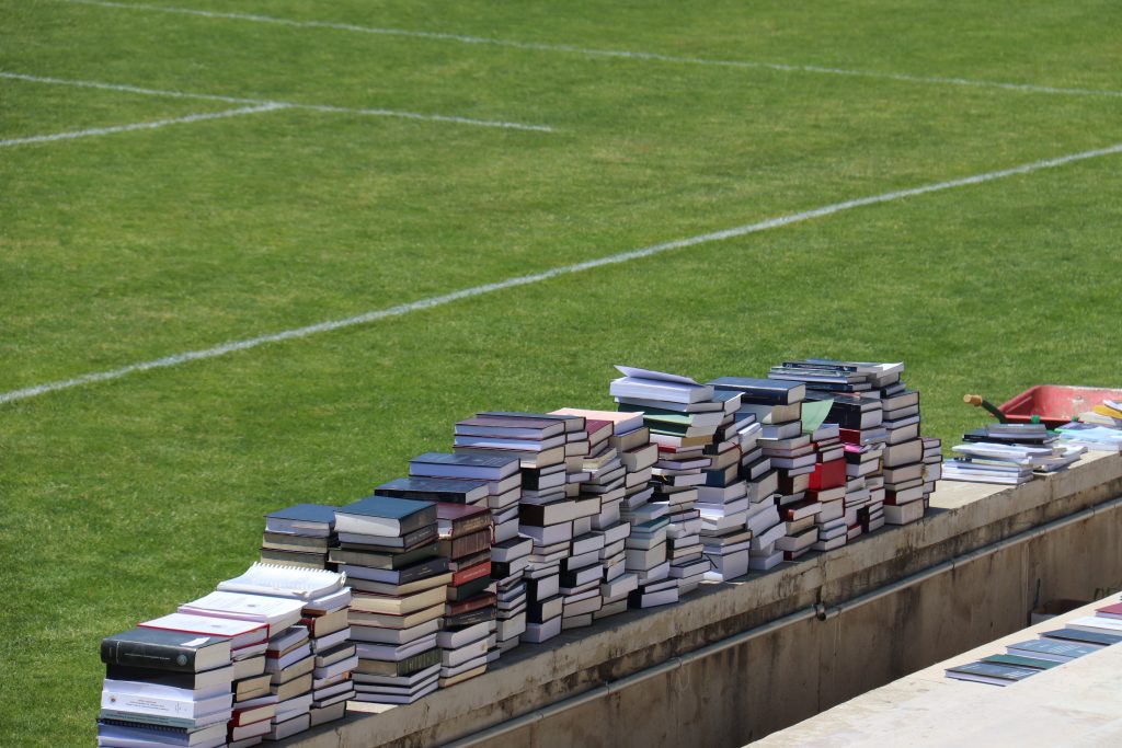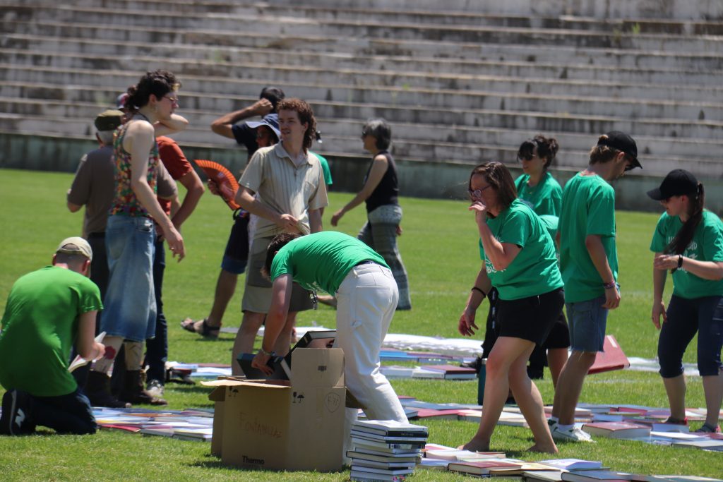 Más de 3000 tesis doctorales han sido distribuidas en el Estadio Nacional de la Universidad Complutense de Madrid para formar un gran letrero con el mensaje «Uni pública». Esta acción, organizada por la plataforma Universidades x la Pública, busca denunciar “la falta de financiación y la pérdida de autonomía en las universidades públicas madrileñas”, así como rechazar las políticas de privatización impulsadas por el Gobierno regional de Isabel Díaz Ayuso.