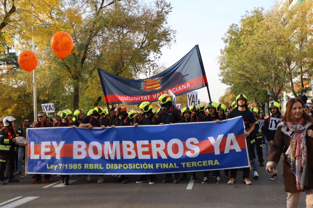 Miles de bomberos se movilizaron el sábado 30 de noviembre en Madrid, convocados por la Coordinadora Unitaria de Bomberos Profesionales (CUBP), para solicitar la aprobación de una ley marco de coordinación, “una ley que pueda cuidar a los bomberos para que nosotros os podamos cuidar a vosotros”. La finalidad de esta ley es que regule la coordinación de los servicios de bomberos y urgencias de diferentes comunidades autónomas tras la caótica organización ante la riada de Valencia.