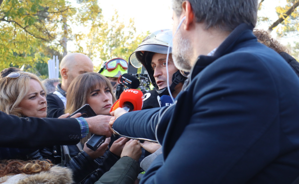 Israel Naveso responde a los medios de antes del inicio de la manifestación | Fotografía: Paola Rubio