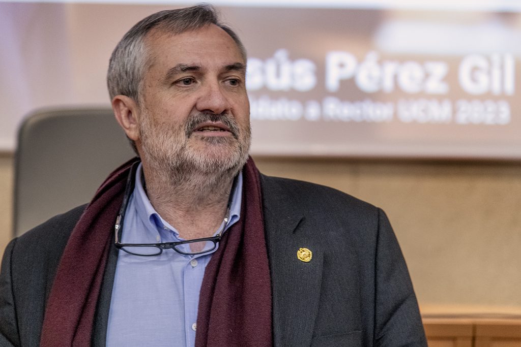 Es catedrático del Departamento de Bioquímica y Biología Molecular en la Facultad de Ciencias Biológicas de la Universidad Complutense de Madrid. Ocupó la dirección del departamento de 2010 a 2018, cuando fue elegido decano de la facultad, cargo que ejerció hasta 2022. Licenciado en Biología por la UCM, ha realizado estadías de investigación en Canadá y Alemania y ha publicado más de 200 artículos en revistas científicas. Hasta 2021 presidió la Asociación de Biofísica de España y la Asociación Europea de Sociedades de Biofísica. Con un perfil técnico, Jesús Pérez pretende, según su programa, priorizar la investigación científica y académica. Se presenta a estas elecciones bajo el lema “Futuro Complutense”.