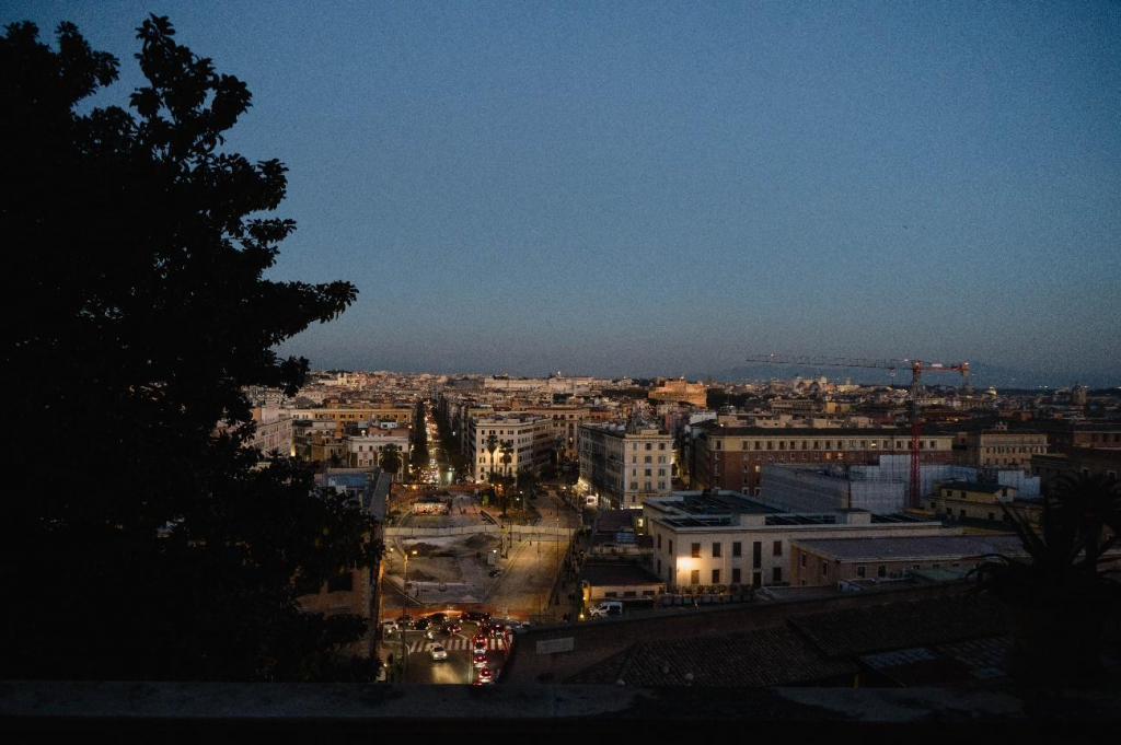 Una vista de Roma al anochecer. Debajo, se vislumbra una grúa y una vía cortada por obras | Foto: Pedro Pascual