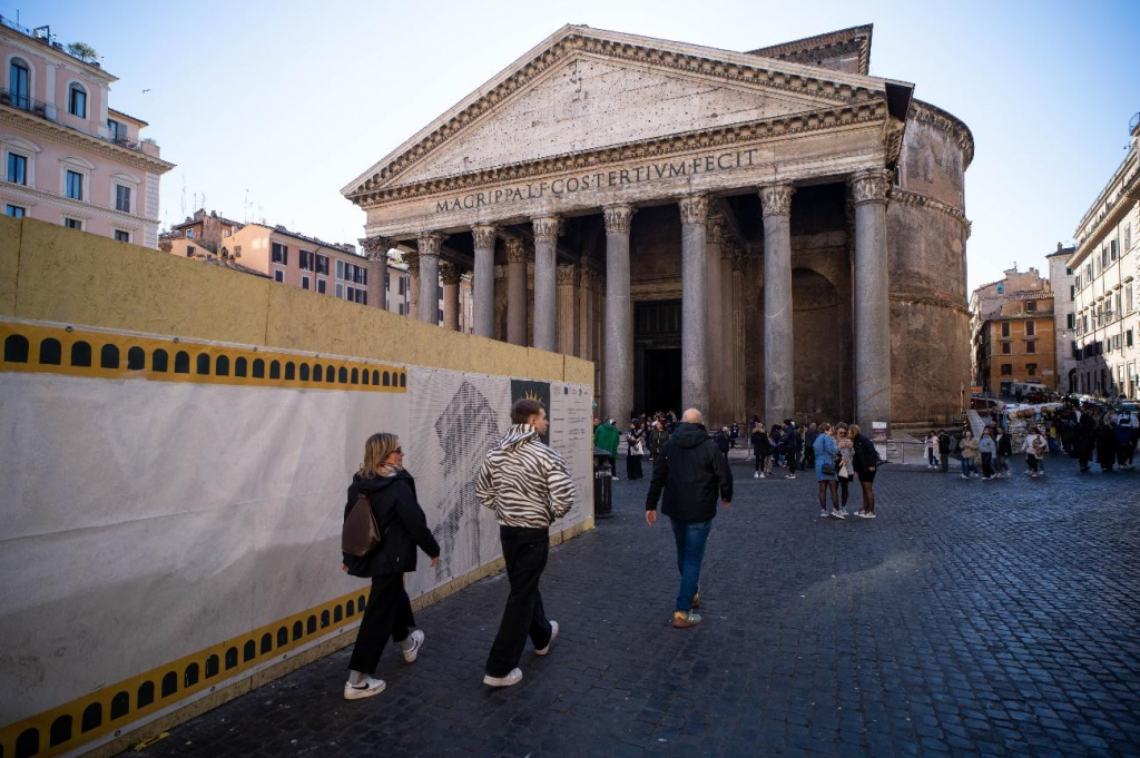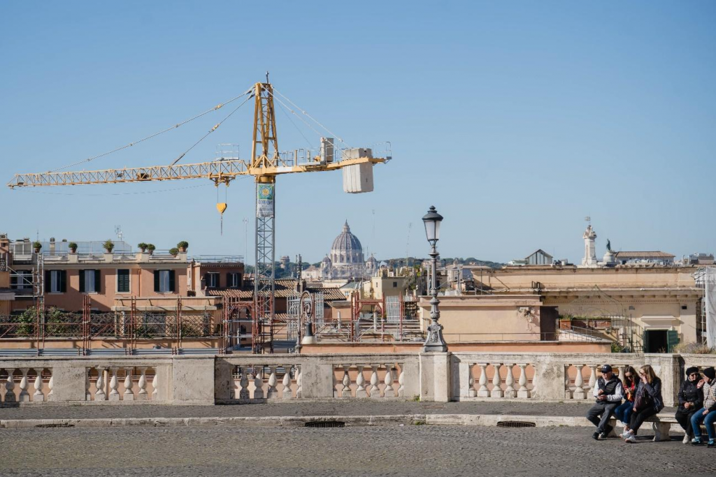 Turistas paseando por el centro de Roma, junto a las labores de mantenimiento por el Jubileo 2025, el 15 de noviembre de 2024 | Foto: Pedro Pascual
