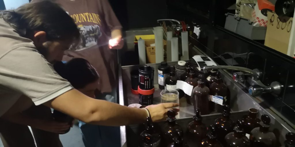 “Pasábamos varios días allí, no solo revelando, sino también enseñando a manejar una cámara analógica, ya que muchos no tenían ni idea de lo que era el obturador u otras funciones porque ahora todo lo hace la máquina automáticamente”, cuenta Reyes. El taller funcionó muy bien hasta que llegó la borrasca Filomena en 2020 y el laboratorio se inundó. Se consiguió sacar adelante el taller en 2021, pero en 2022 hubo obras debido a la inundación y todo quedó desordenado e inutilizable.