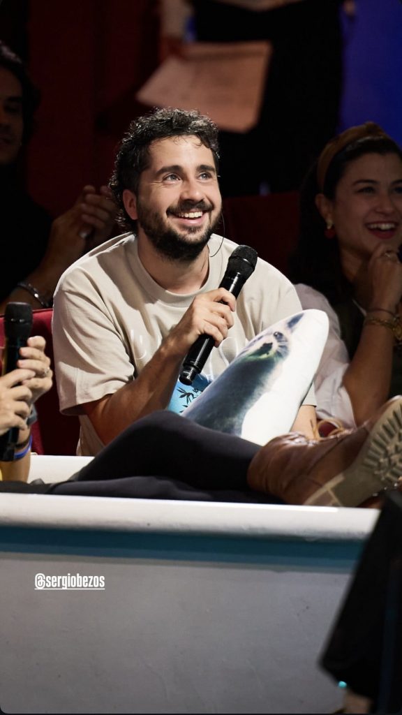Sergio Bezos llega a la entrevista con la misma naturalidad desconcertante con la que se enfrenta cada noche al público de La Revuelta. No hay guión, ni en el plató de televisión ni en esta cafetería en la que nos encontramos. A primera vista, podría parecer un tipo tranquilo, lejos de la imagen de agitador de masas que proyecta en su show. Sin embargo, en cuanto empieza a hablar, asoma ese estilo inconfundible que él define como una mezcla de inocencia y caos. Formado en Comunicación Audiovisual, con tres másteres y curtido en la improvisación teatral tras estudiar en el conservatorio, Bezos ha pasado de escribir en la sombra a convertirse en un elemento imprescindible del humor actual en España.