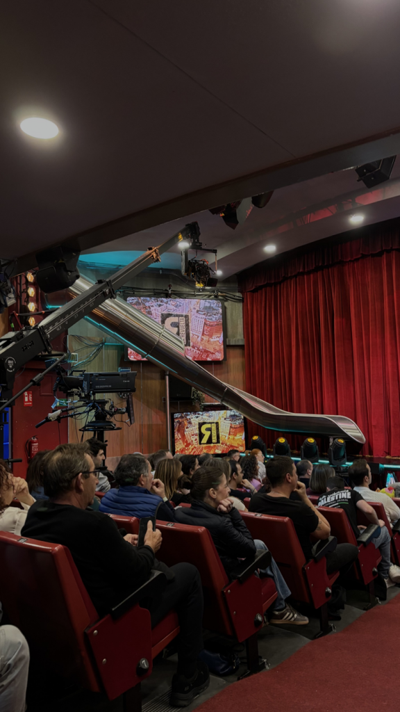Sin embargo, la historia no termina aquí. Minutos más tarde, en el teatro donde se graba La Revuelta, el cambio es brutal. En cuanto se encienden las luces, el chico tranquilo de la cafetería desaparece y emerge la bestia escénica, capaz de domar el caos y convertir el error en arte.