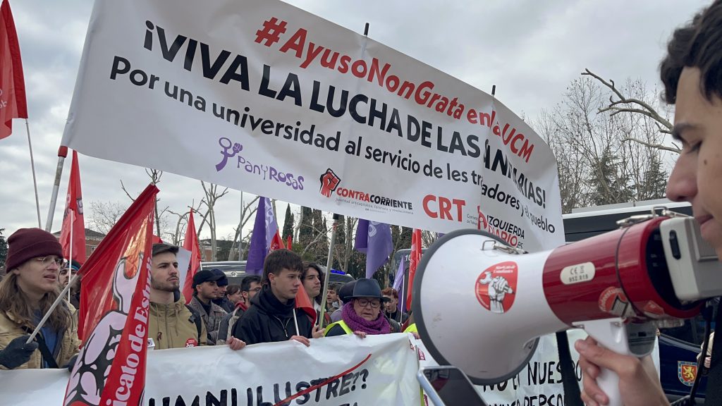 El nombramiento de Isabel Díaz Ayuso como alumna ilustre ha provocado grandes críticas desde su anuncio. La presidenta ha tenido un recibimiento hostil en la facultad, entre consignas de “sanidad pública”, “Ayuso y el rector, la misma mierda son” y “fuera fascistas de la universidad”. Se han solapado hasta dos manifestaciones en contra de su presencia, que han coincidido con un grupo de jóvenes simpatizantes de la líder autonómica, a quienes sus detractores han acusado de no pertenecer a la universidad y de venir solo a politizar el acto.