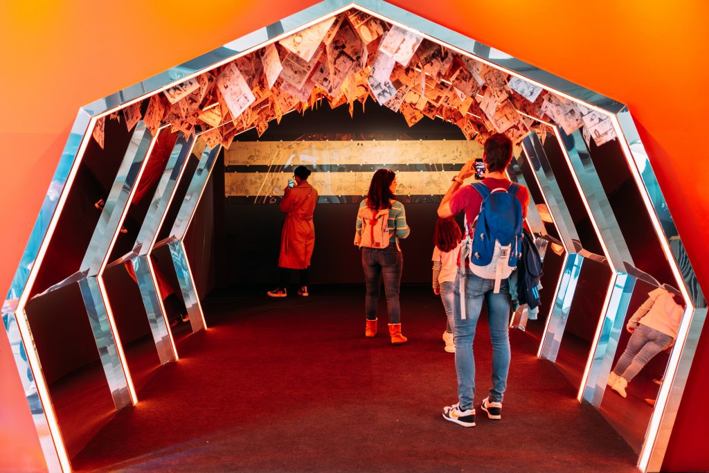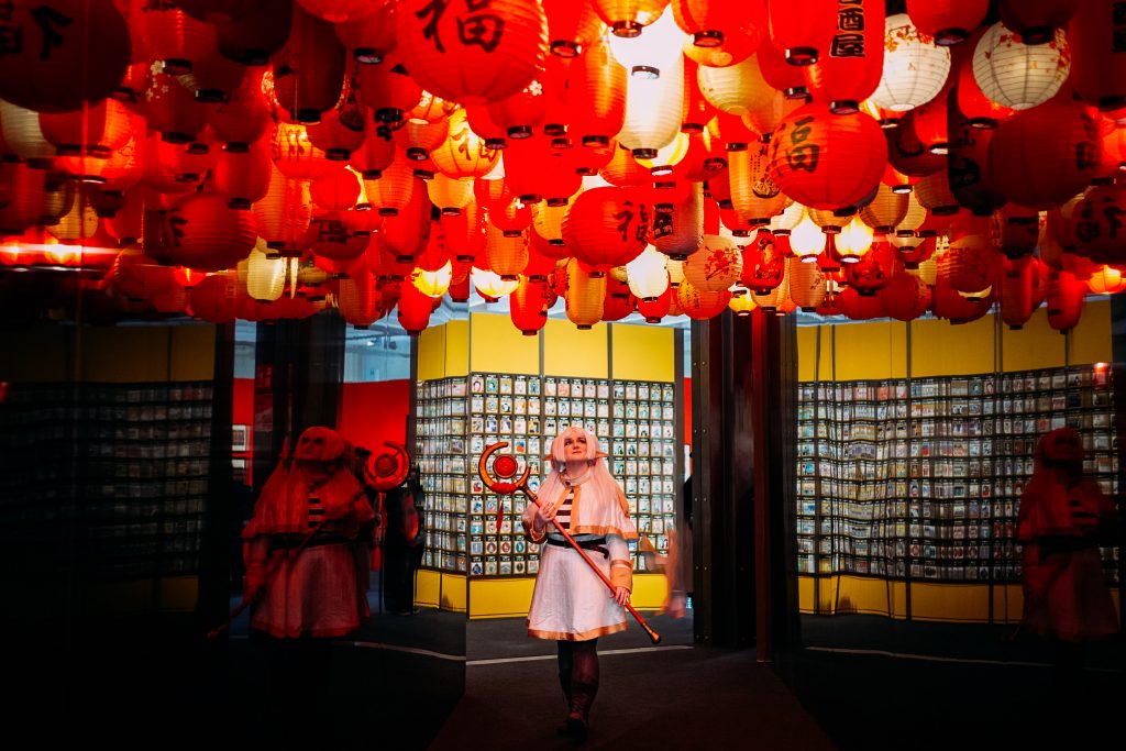 Si se avanza más, el visitante atravesará un torii (鳥居, puerta de entrada de los templos sintoístas) y, a través de otro túnel, cuyo techo está adornado con farolillos japoneses, llegará a la zona de las obras. Esta segunda área alberga a los samuráis (guerreros), los Yōkai (espíritus) y los productos del manga, con zonas dedicadas a One Piece, a Naruto, a los primeros animes que vieron los españoles desde los años 70, a la clasificación por demografías en el manga y a Osamu Tezuka (“el dios del manga”).