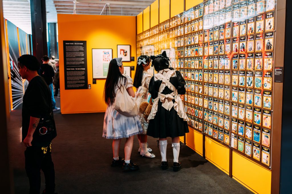 Entre la multitud de artistas destacados en la exposición, Osamu Tezuka (1928-1989) se alza como el “dios del manga” por haber revolucionado el formato con su obra La nueva isla del tesoro (1947). También fue el fundador del estudio de animación Mushi Production, desde el que produjo Astro Boy, “el primer anime japonés convertido en serie para televisión”. Como “narrador visionario”, la exposición presenta una pared completamente empapelada con sus mangas.