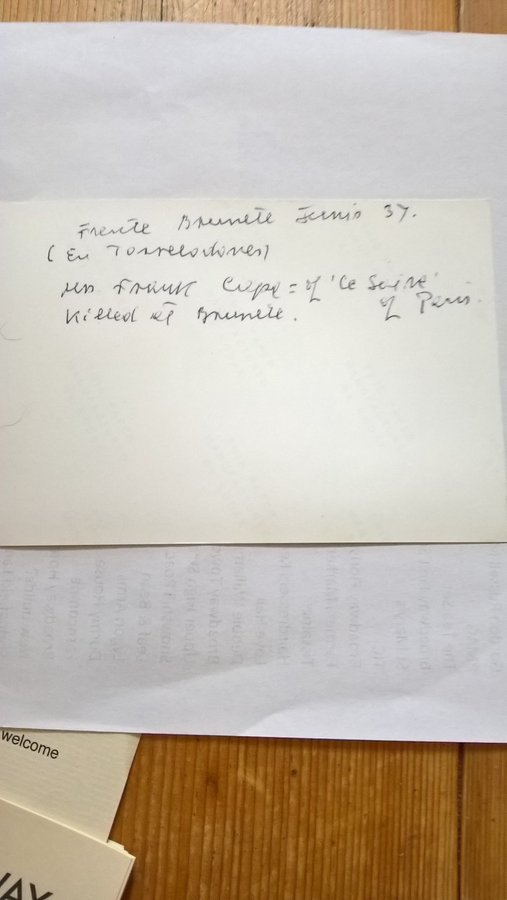 La imagen estaba recortada y sólo se leían las cinco primeras letras de la palabra escrita en el parabrisas de un coche. Rufo nunca llegó a afirmar que la imagen fuera tomada en Brunete, pero sí que las letras podrían formar la palabra “general” (el automóvil en el que viajaba era el del general Walter): “La foto sería descorazonadora por la cara que se le queda a ella cuando ve que en el coche hay heridos”. Sin embargo, la realidad es que no podía tratarse del Matford Alsace del general Walter, pues las letras formarían la palabra “Generalitat” (como se apreciaba en la imagen con mayor resolución). Además, Guillermo Poza destaca que la vestimenta coincide con la que llevaba en el entierro del General Lukacs en Barcelona, en junio del 37, por lo que la idea de esta como última foto de Taro con vida quedaría descartada.