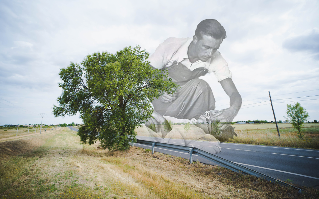 Solemne y solitario, un fresno se alza muy próximo a la M-600, la carretera de Brunete a El Escorial. Ha crecido tan cerca de la calzada, o se construyó la calzada tan próxima al fresno, que las autoridades decidieron resguardarlo a él y a los conductores con un quitamiedos. El metal casi roza la corteza de este Fraxinus angustifolia que tiene, al menos, 27 años. Las raíces del árbol se hunden bajo el trazado de una vía que fue escenario de momentos trágicos de la historia de España: la guerra civil y la batalla de Brunete.