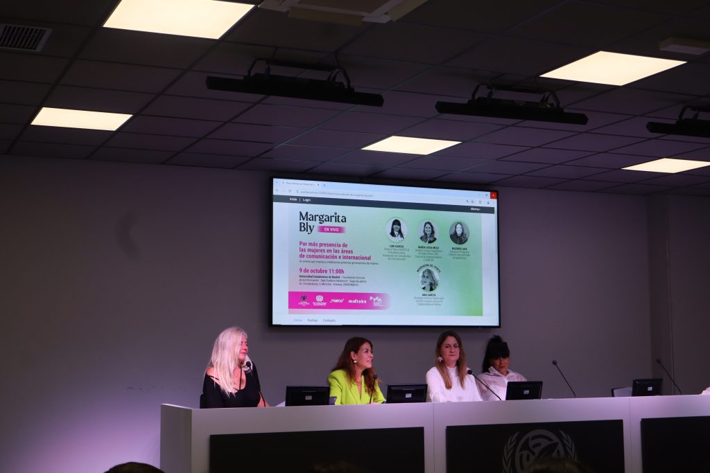 La Facultad de Ciencias de la Información acogió una conferencia organizada por el think tank Margarita Bly con el fin de visibilizar el papel de la mujer en los medios de comunicación. La conferencia tuvo lugar el pasado miércoles 9 de octubre y contó con la participación de Mildred Laya (Sales Force); María Luisa Melo (DHL Europa); Ludi García (Iberia) y Ana García Huerta como moderadora del evento, todas licenciadas en Periodismo y dedicadas actualmente al sector tecnológico.