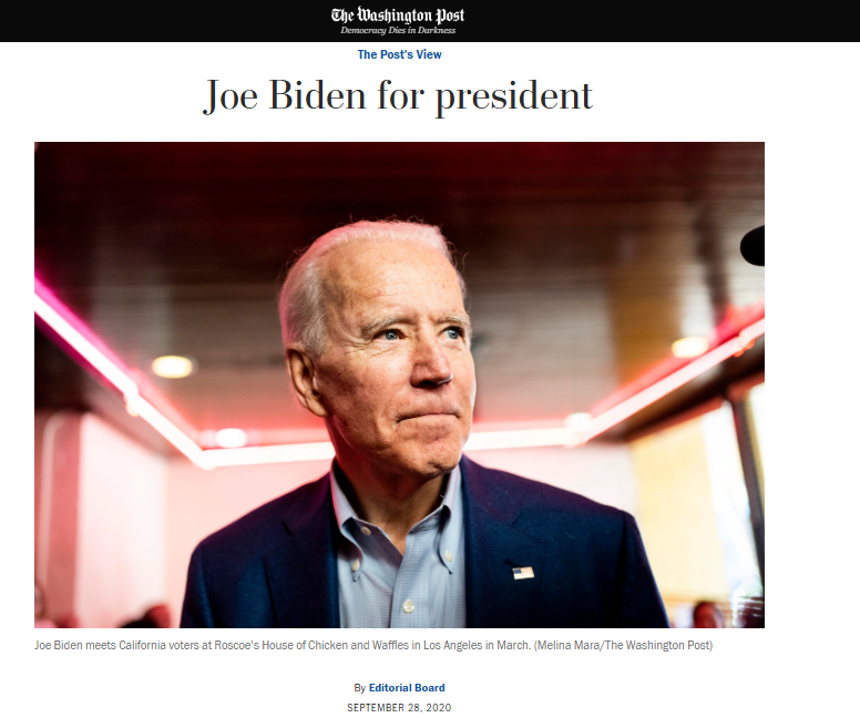 En cuanto a la prensa escrita, tanto el Washington Post como el New York Times han mostrado su apoyo a las candidaturas demócratas de Hillary Clinton en 2016 y de Joe Biden en 2020.