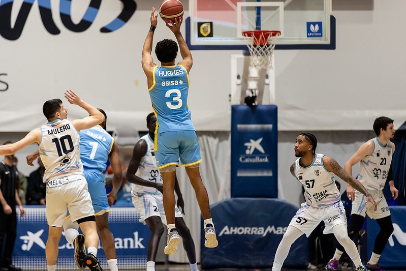 El tercer periodo sería un calco del segundo en cuanto a intensidad, acierto y velocidad de juego, algo que no gustaba a Javi Rodríguez, técnico local. El marcador al comenzar los últimos 10 minutos fue de 54-41. Mediante la dupla Delgado-Davis III, el Melilla apretaría a su rival llegando a ponerse a tan solo 5 puntos (56-51). Sin embargo, apareció un Hughes espléndido para volver a aumentar la diferencia cuando más complicadas estaban las cosas. El partido acabó con un tanteo de 75-61.